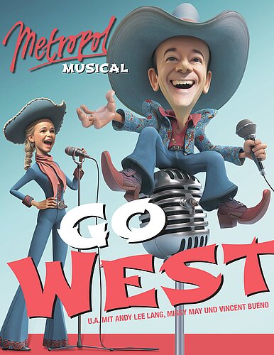 Am 12. Februar 2026 feiert das Wiener Metropol Premiere einer Neuinszenierung des legendären Metropol-Musicals „Go West“ aus dem Jahr 2010. Mit Andy Lee Lang, Missy May, Vincent Bueno und weiteren Publikumslieblingen erwartet das Publikum ein wildes, humorvolles Spektakel zwischen Western-Action, Country-Rock und Wiener Schmäh und zeigt abermals den irrwitzigsten Showdown seit der Zeit, als noch die Marx Brothers in ihrem Film „Go West“ das Western Genre auf den Kopf gestellt haben.